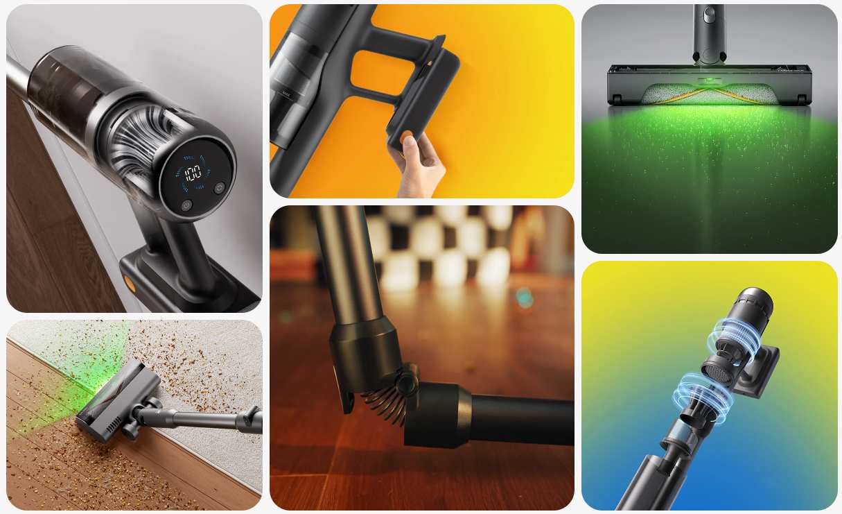 תאורת האור הירוקה חושפת אבק נסתר לניקוי יסודי יותר, בעוד שמערכת הסינון המתקדמת מסייעת לשמור על אוויר רענן בביתכם על ידי הפחתת זיהום משני.